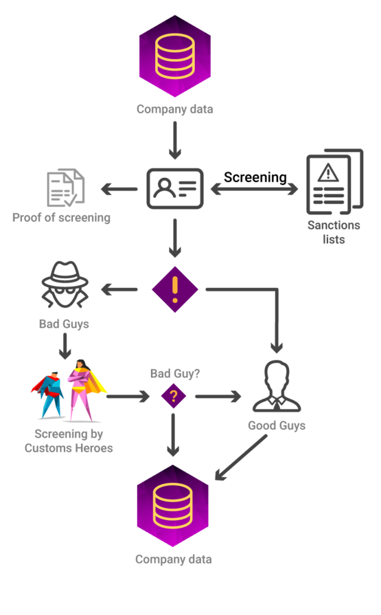 We always screen against daily updatet sanctions lists and against all lists relevant to your company.